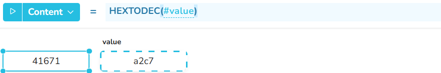 *Example 1* - HEXTODEC of a single value:
