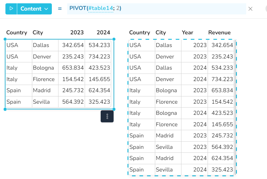 range - the range whose content should be converted in a pivot structure - Value type: a range of any data