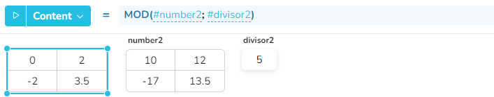 1. *number* - die Zahl, von der der Modulo-Rest zurückgegeben werden soll - ***Wertetyp:** Zahl*