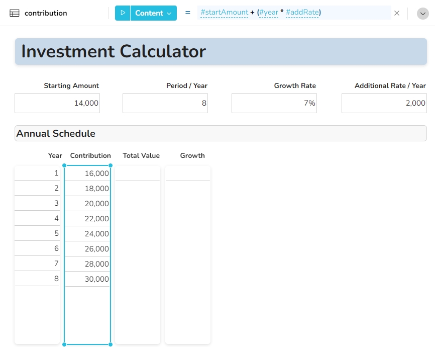 #startAmount + (#year * #addRate)
