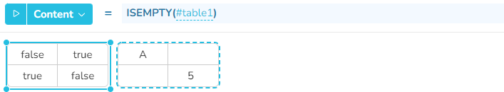 Returns true if a value is of type empty or an empty text (““) , otherwise false.