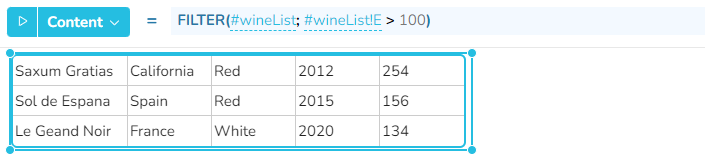 The two selected widgets below extract rows from the widget "winelist", based on different conditions.