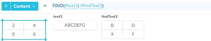 The search is performed case-sensitive, so the found text within parameter text must have the same casing than parameter findText.