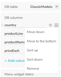 The specified menu widgets must contain a database request as well, including one db column, as described above.