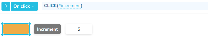Ein Klick auf die orangefarbene Schaltfläche ruft die Funktion CLICK auf, die dann einen "On click" auf die Schaltfläche "Increment" aufruft, die dann den Wert des Zellen-Widgets erhöht.