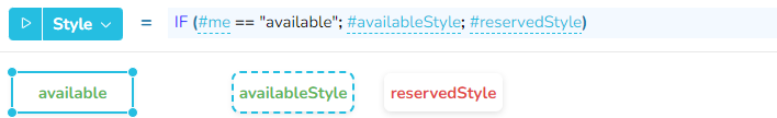 Wenn der Inhalt der linken Zelle "available" ist, wird der Stil des Widgets availableStyle verwendet. Wenn nicht, wird der Stil des Widgets reservedStyle verwendet.
