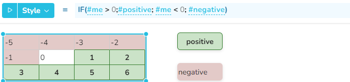 In diesem Tabellen-Widget werden die Zellen mit negativen Zahlen im Stil des Widgets mit Namen negativ und die Zellen mit positiven Zahlen im Stil des Widgets positive angezeigt.