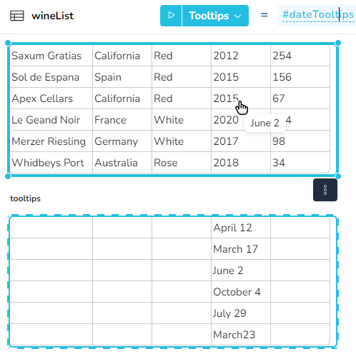 Die Eigenschaft Tooltips definiert, welche Tooltips bei Widgets, bei Zellen eines Tabellen Widgets, den Einträgen bei einem Menü-Widget oder Elementen eines Chart-Widgets angezeigt werden.
