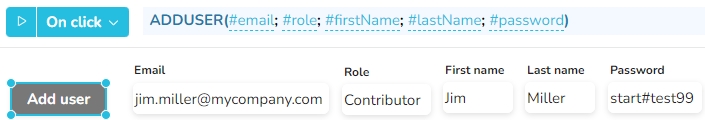 ADDUSER(email; workspaceRole; firstName; lastName; password)