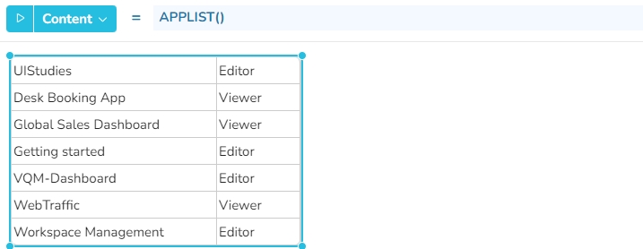 Rolle des aktuellen Benutzers - Wertetyp: Text Mögliche Werte sind: “Editor”, “Viewer”, “none” "none" bedeutet, dass der aktuelle Benutzer die Anwendung nicht öffnen kann.