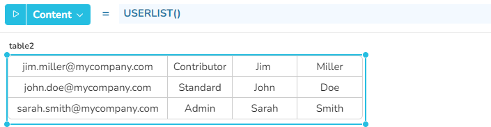 Die Funktion gibt einen Bereich zurück, in dem jede Zeile diese Benutzerinformationen enthält: