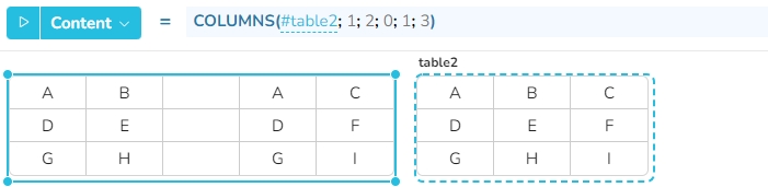 • range - der Bereich, aus dem die Spalten extrahiert werden sollen- Wertetyp: Bereich