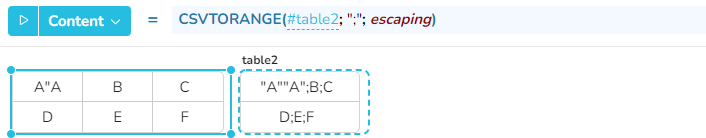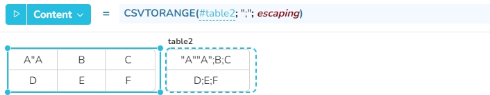 noescaping - Begrenzungszeichen in Zellwerten werden nicht umgewandelt