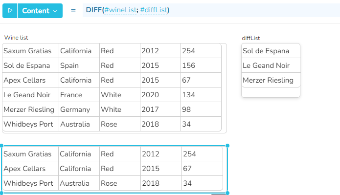 alle Zeilen des Bereichs, die einen Wert enthalten, der auch in diffRange enthalten ist, werden entfernt.