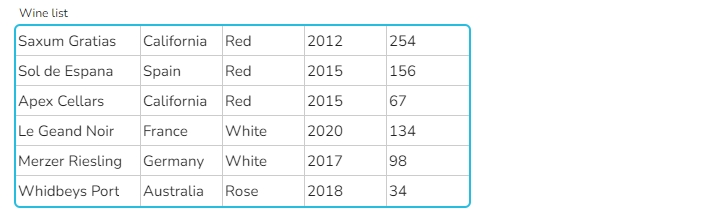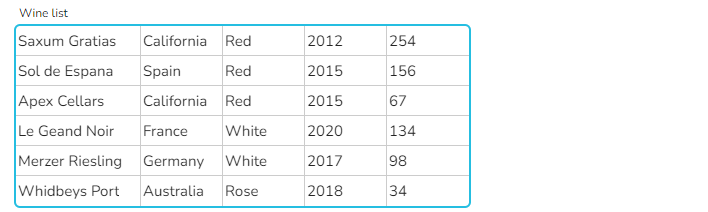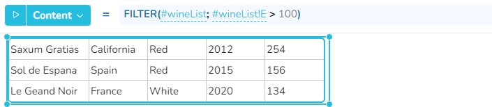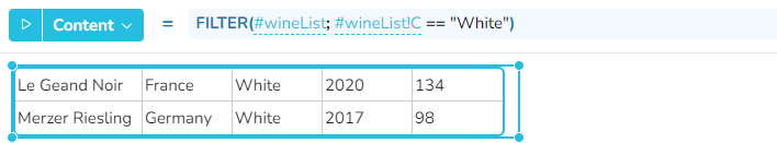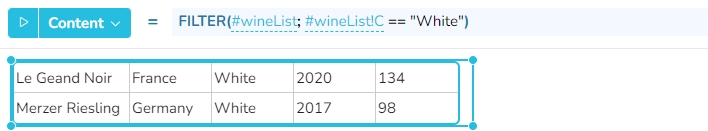 Die beiden unten ausgewählten Widgets extrahieren Zeilen aus dem Widget "winelist" auf der Grundlage unterschiedlicher Bedingungen.