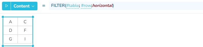 horizontal - die filterCondition ist eine Zeile für das Entfernen von Spalten aus range