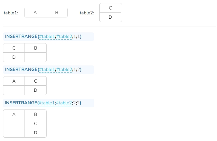 insertRange, beginnend an der Position (row,column). Die Werte von Range werden dort ersetzt.