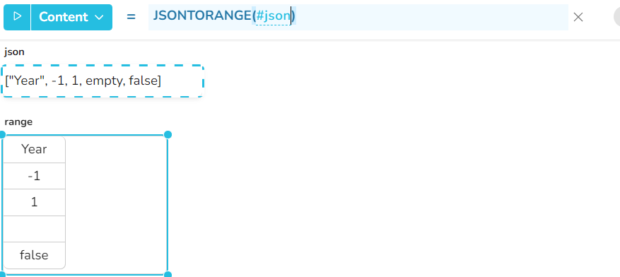 In dem Ergebnisbereich werden nur die obersten 1-2 Ebenen der json-Zeichenfolge in Zellinhalte umgewandelt