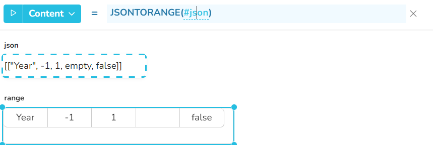 json - ein Text im json-Format, aus dem der Inhalt als Bereich extrahiert wird - Wertetyp: Text