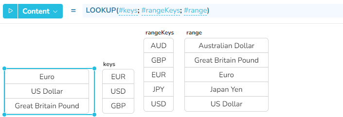 rangeKeys - die Spalte, in der nach den Schlüsseln von keyColumn gesucht werden soll - Wertetyp: Spaltenbereich