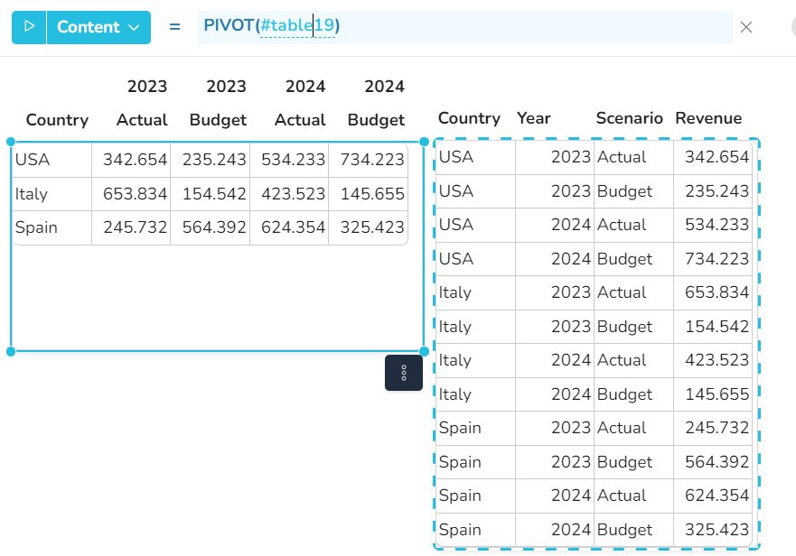 * *range* - der Bereich, dessen Inhalt in eine Pivot-Struktur umgewandelt werden soll - ***Wertetyp**: ein Bereich mit beliebigen Wertetypen*