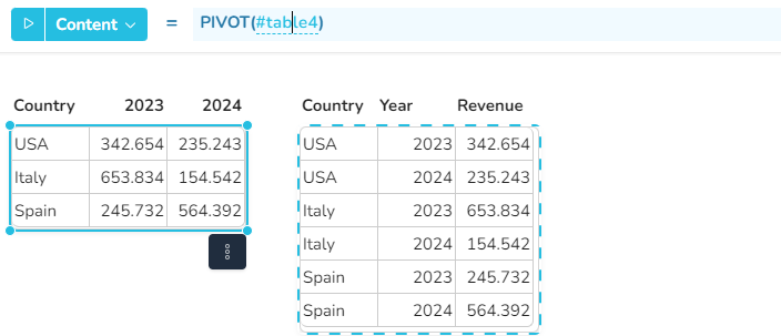 * *numRowElements* - gibt an, wie viele Anfangsspalten aus *range* für die Zeilen des Ergebnisbereichs verwendet werden sollen - ***Wertetyp**: Zahl (optional, Standardwert: 1)*