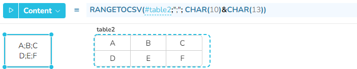 RANGETOCSV(range; columnDelimiter; rowDelimiter; option)