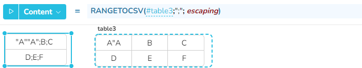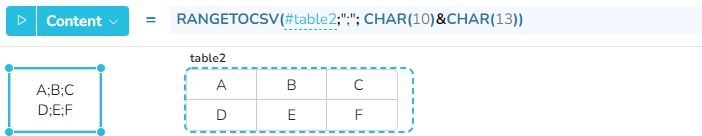 range - der Bereich, der in einen csv-Text umgewandelt werden soll - Wertetyp: Bereich mit Zellen des Wertetyps "Text"