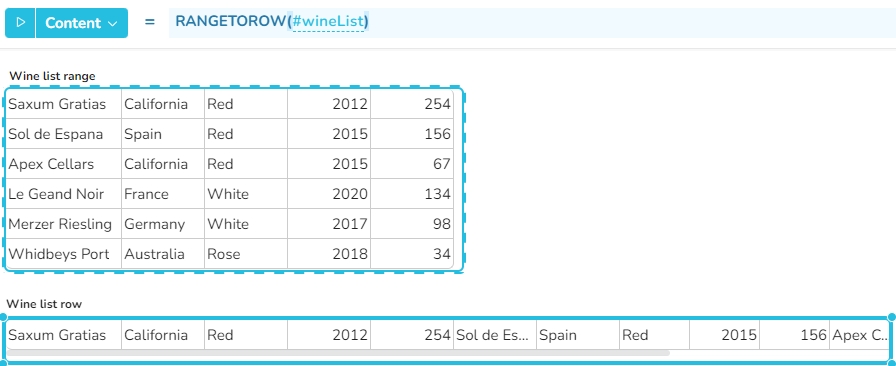 Die Funktion gibt einen Zeilen-Bereich zurück, der alle Zeilen von range enthält, nacheinander von links nach rechts aufgefüllt.