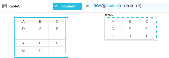 Die linke Tabelle wird mit den Zeilen1 und 3 von table1 gefüllt.
