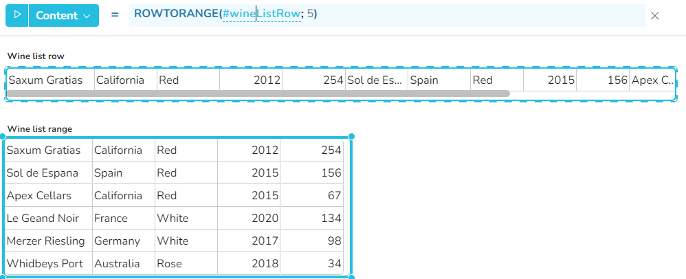 row - die Zeile, die in einen Bereich konvertiert werden soll - Wertetyp: eine Zeile mit Zellen eines beliebigen Wertetyps