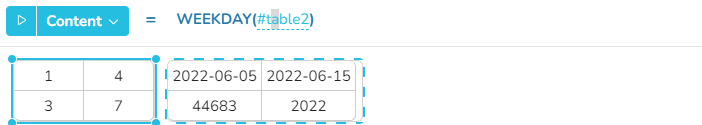 Jeder Wert, der in ein Datum umgewandelt werden kann, kann als Parameter für die Funktion WEEKDAY verwendet werden, z.B. einfache Zahlen.