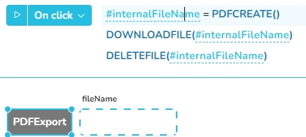Durch Klicken auf die Schaltfläche "PDFExport" wird eine PDF-Datei erstellt, die die aktuelle Seite enthält. Diese wird anschließend mit der Funktion DOWNLOADFILE auf den lokalen Rechner runtergeladen und dann mit der Funktion DELETEFILE gelöscht.