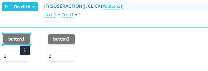 Button1 ruft die Aktion "On click" von Button2 auf (mit der Funktion CLICK), und Button2 ruft dasselbe bei Button1 auf. Ohne die Prüfung durch die Funktion ISUSERACTION würde dies zu einer Rekursion führen.