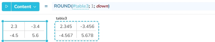 • digits - die Anzahl der Stellen, die gerundet werden sollen - Wertetyp: Zahl (optional, Standardwert: 0)
