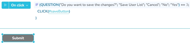 Wenn der Benutzer auf die Schaltfläche Submit klickt, wird die folgende Frage angezeigt: