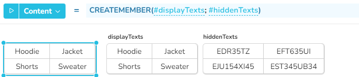 **CREATEMEMBER**(*displayText*; *hiddenText*)
