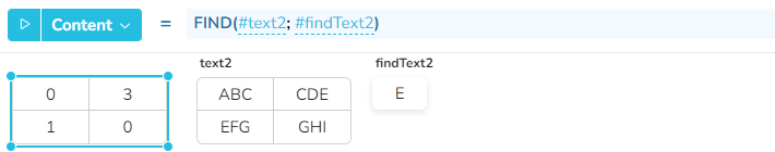 * *findText* - den Text, der im Parameter text zu finden ist - ***Wertetyp**: Text*