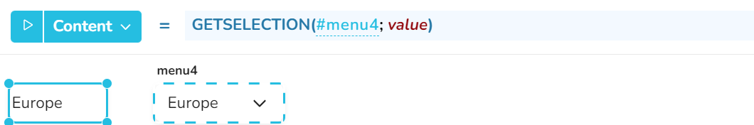 Die linke Zelle wird mit der ausgewählten Position von menu1 gefüllt: