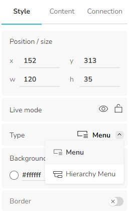 Die Untertypen "Hierarchie" (für Tabellen-Widgets) und "Hierarchie-Menü" (für Menü-Widgets) können auf der Registerkarte Stile ausgewählt werden: