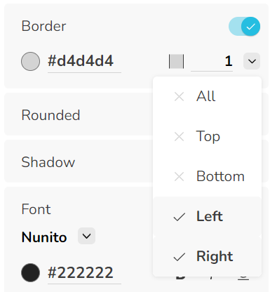 Widget-Stile wie Hintergrund, Rahmen, Schriftart usw. können für ein einzelnes und für mehrere ausgewählte Widgets geändert werden.